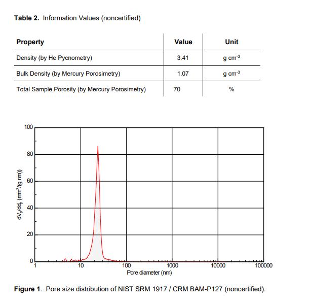 NIST SRM 1917汞滲透測量標準(標準品)由氧化鋁珠組成。材料的初級顆粒形成穩(wěn)定的附聚物。使用水銀孔隙率測定法,測量團塊內(nèi)的孔隙。